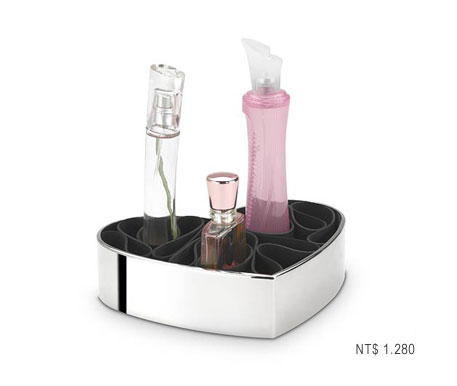 產品說明/ 一款專為現代女性所設計的香水、化妝品收納盒,設計時尚高貴。優雅的心型設計,搭配高級不鏽鋼質感的美麗收納盒,以桃紅為盒子的底色,以您珍藏的香水、口紅等瓶身為主幹,利用柔軟且具彈性的橡膠隔層,創造視覺上如同香水在前味、中味、後味的完美表現,讓化妝品收納更井然有序,防止瓶罐打翻,將珍藏的香水瓶身置入其中,更能增加收藏價值。Unique and functional, and it is beautiful to look at too! 喜愛收藏美麗瓶身的妳,不容錯過。