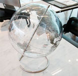 的夜。透明的地球儀設計,展現地軸傾斜23.5度的美感。擺設於窗台邊,當陽光穿